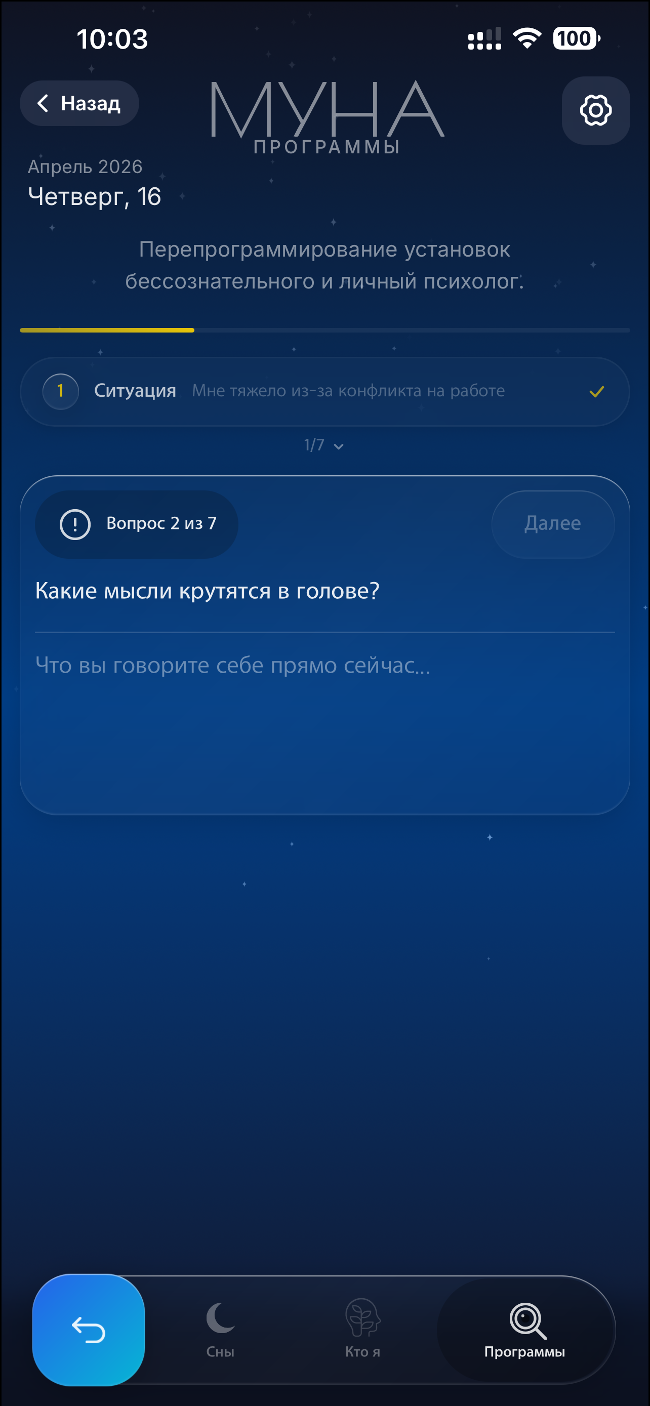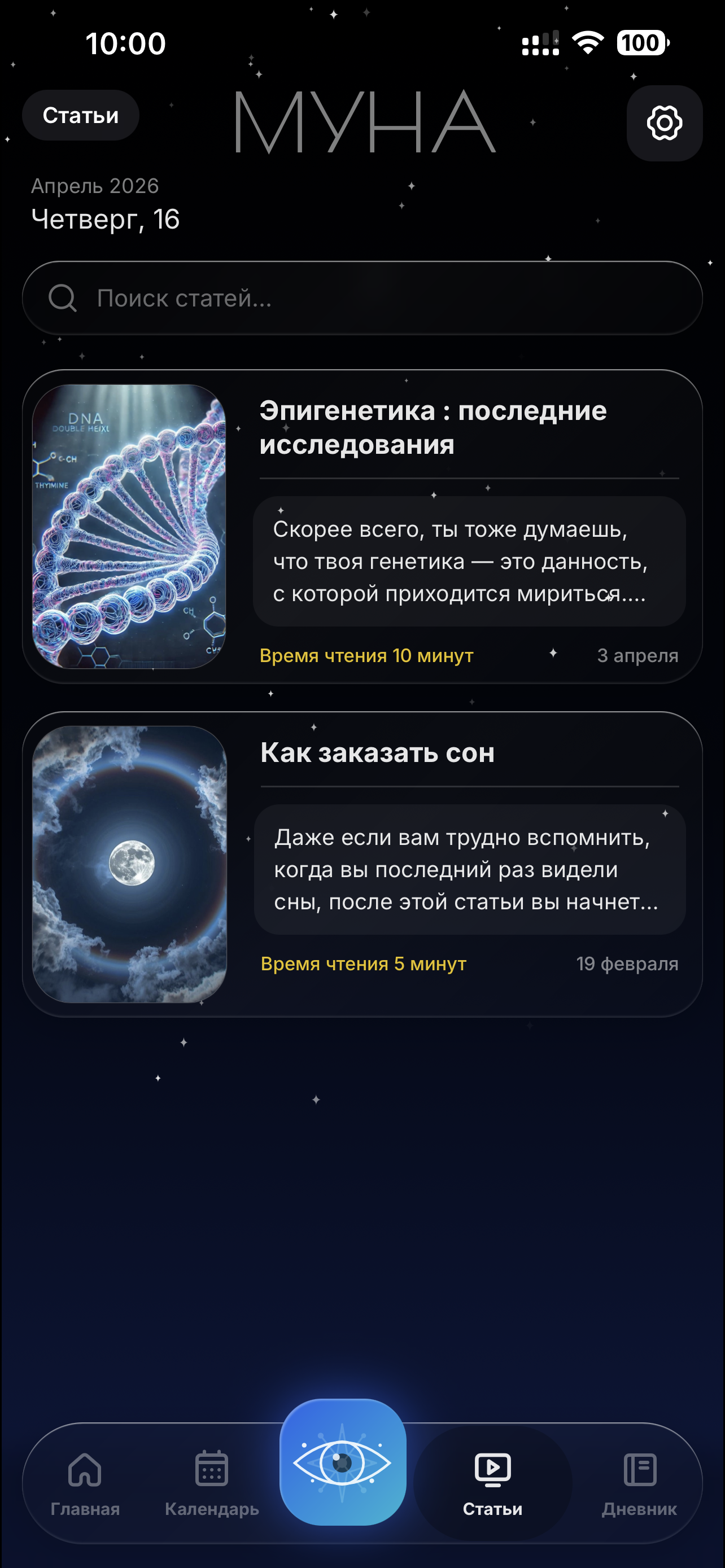 МУНА — это мини-приложение в Telegram и веб-приложение, предоставляющее справочную информацию о лунных циклах, инструменты для отслеживания менструального цикла, а также использующее технологии искусственного интеллекта для развлекательной интерпретации снов, анализа личности и программ саморазвития.