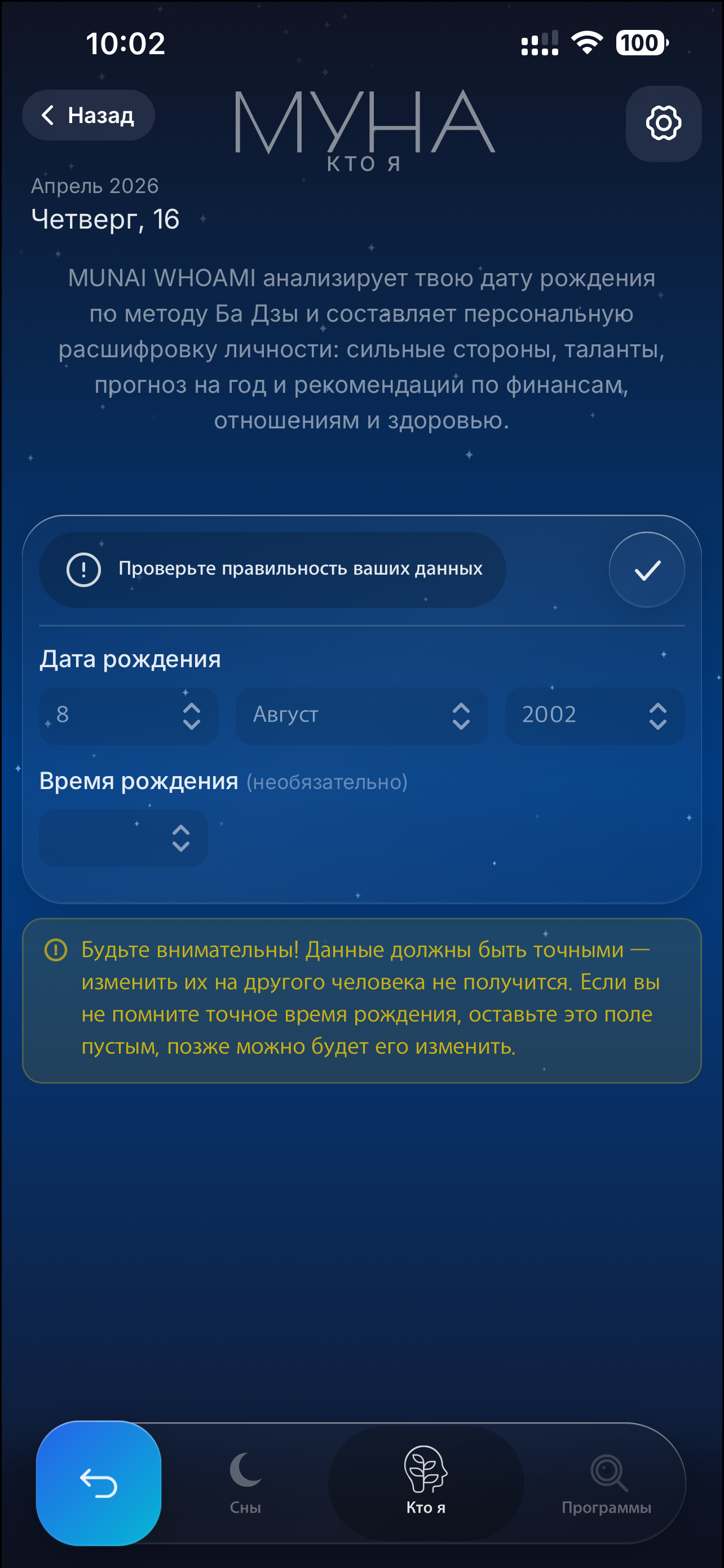 AI-анализ «Кто я» на основе даты рождения — раскройте свой потенциал и скрытые таланты.